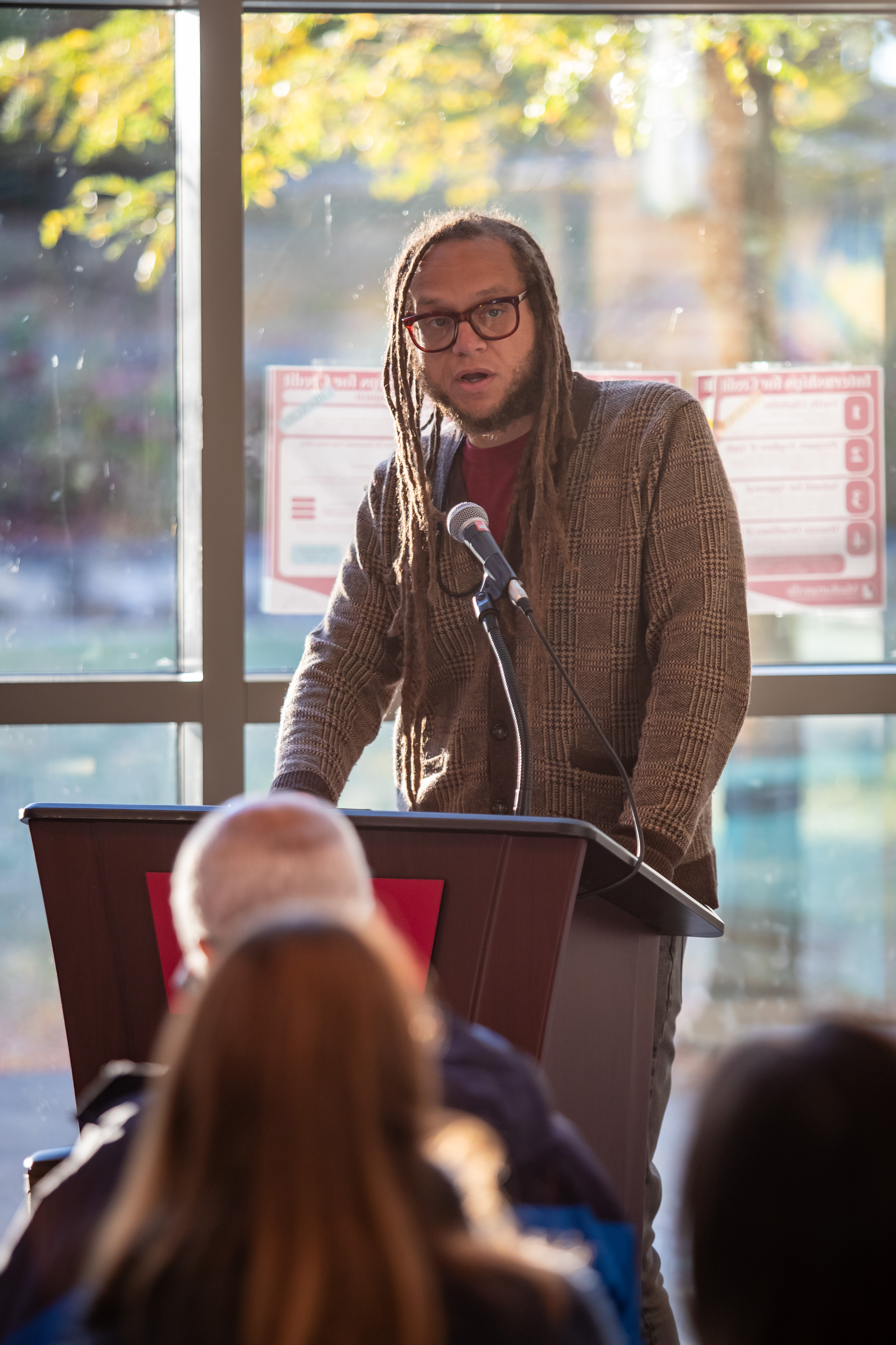 Iain Haley Pollock is the author of three poetry collections, Spit Back a Boy (2011), Ghost, Like a Place, and the forthcoming All the Possible Bodies (Alice James, September 2025). He has received several honors for his work including the Cave Canem Poetry Prize, the Alice Fay di Castagnola Award from the Poetry Society of America, a NYSCA/NYFA Artist Fellowship in Poetry, the Bim Ramke Prize for Poetry, and a nomination for an NAACP Image Award. His poems have appeared in many literary outlets, including African American Review, American Academy of Poets Poem-a-Day, American Poetry Review, The Kenyon Review, The New York Times Magazine, PoetrySociety.org and The Progressive. Outside of publishing poems, Pollock has performed his work widely, from the Dodge Poetry Festival to libraries and art centers; he curated the Rye Poetry Path, a public poetry installation in Rye, NY; he serves on the editorial board at Slapering Hol Press and on the board of Tiger Bark Press; and he edits the literary journal Inkwell. Pollock directs the MFA Program in Creative Writing at Manhattanville University in Purchase, NY and lives in the Lower Hudson Valley.